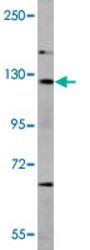 - Western blot analysis of 293 cell lysate (35 ug/lane) with DAAM2 polyclonal antibody (Cat # PAB2992).