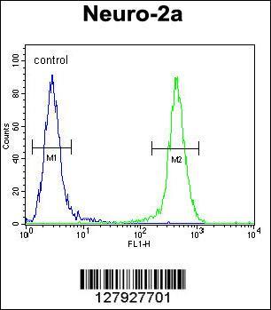 - JOSD2 Antibody (N-term) (Cat. #AP10599a) flow cytometric analysis of Neuro-2a cells (right histogram) compared to a negative control cell (left histogram).FITC-conjugated goat-anti-rabbit secondary antibodies were used for the analysis.
