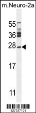 - JOSD2 Antibody (N-term) western blot analysis in mouse Neuro-2a cell lysates (35ug/lane).This demonstrates the JOSD2 antibody detected the JOSD2 protein (arrow).