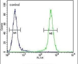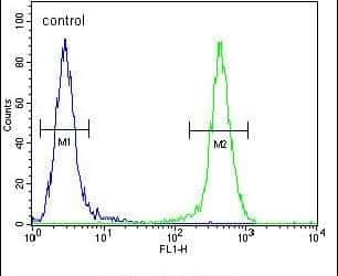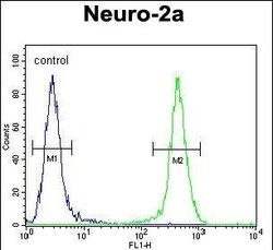 - Flow cytometry of JOSD2 in Neuro-2a cells (right histogram). Samples were incubated with JOSD2 polyclonal antibody (Product # PA5-24098) followed by FITC-conjugated goat-anti-rabbit secondary antibody. Negative control cell (left histogram).