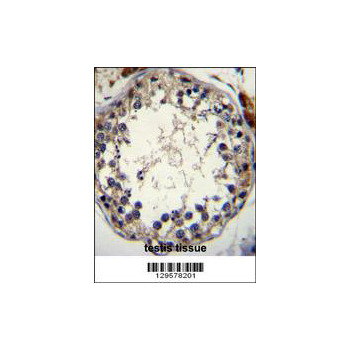 - STRA8 Antibody (C-term) (Cat. #OAAB07680)immunohistochemistry analysis in formalin fixed and paraffin embedded human testis tissue followed by peroxidase conjugation of the secondary antibody and DAB staining.This data demonstrates the use of STRA8 Antibody (C-term) for immunohistochemistry. Clinical relevance has not been evaluated.