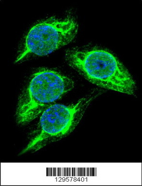 - Confocal immunofluorescent analysis of STRA8 Antibody (C-term)(Cat#TA324402) with 293 cell followed by Alexa Fluor 488-conjugated goat anti-rabbit lgG (green). DAPI was used to stain the cell nuclear (blue).