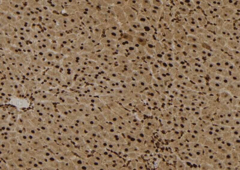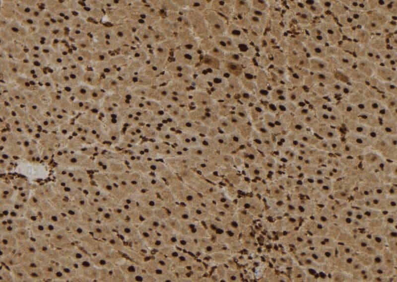 - Immunohistochemistry analysis of paraffin-embedded EPS8L3 in mouse liver tissue. Antigen retrieval was performed using citrate buffer. Samples were blocked with blocking buffer (1.5 hr, 22°C), incubated with EPS8L3 polyclonal antibody (Product # PA5-99620) using a dilution of 1:100 (1.5 hr, 22°C), followed by HRP conjugated goat anti-rabbit.