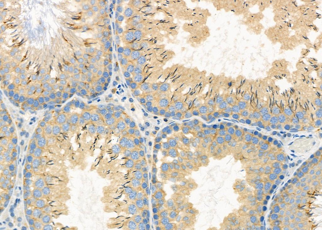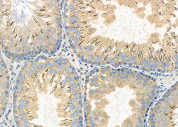 - Immunohistochemistry analysis of EPS8L3 in rat testis tissue. The sample was formaldehyde fixed and a heat mediated antigen retrieval step in citrate buffer was performed. Samples were incubated with EPS8L3 polyclonal antibody (Product # PA5-99620) using a dilution of 1:100 (4°C overnight) followed by HRP conjugated anti-Rabbit secondary antibody.