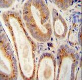- WFDC12 antibody immunohistochemistry of formalin-fixed and paraffin-embedded human prostate carcinoma followed by peroxidase-conjugated secondary antibody and DAB staining.