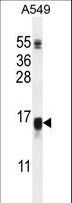 - WFDC12 Antibody western blot of A549 cell line lysates (35 ug/lane). The WFDC12 antibody detected the WFDC12 protein (arrow).