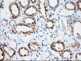 - Immunohistochemical staining of paraffin-embedded Human Kidney tissue using anti-MIOX mouse monoclonal antibody. (GTX84113, Dilution 1:50)