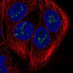 - Immunofluorescent staining of C20orf12 in human cell line CACO-2 shows localization to nucleoli fibrillar center. Samples were probed using a C20orf12 Polyclonal Antibody (Product # PA5-66676).
