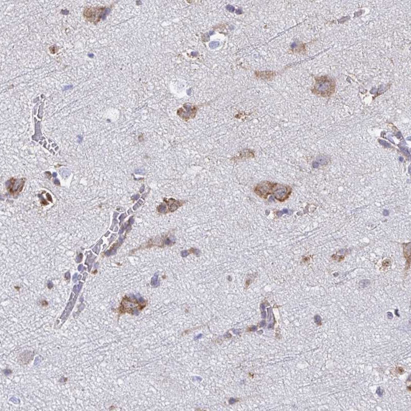 - Immunohistochemical analysis of TMEM241 in human cerebral cortex using TMEM241 Polyclonal Antibody (Product # PA5-63796) shows moderate cytoplasmic positivity in neuronal cells.
