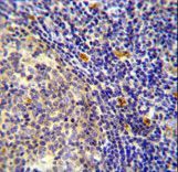 - YDJC Antibody immunohistochemistry of formalin-fixed and paraffin-embedded human tonsil tissue followed by peroxidase-conjugated secondary antibody and DAB staining.