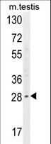 - YDJC Antibody western blot of mouse testis tissue lysates (35 ug/lane). The YDJC antibody detected the YDJC protein (arrow).