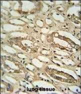- Immunohistochemistry analysis of GGTLC2 in formalin fixed and paraffin embedded human lung tissue. Samples were incubated with GGTLC2 polyclonal antibody (Product # PA5-23722) followed by peroxidase conjugation of the secondary antibody and DAB staining. This data demonstrates the use of this antibody for immunohistochemistry. Clinical relevance has not been evaluated.