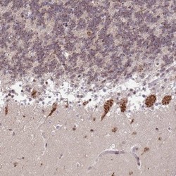 - Immunohistochemistry-Paraffin: TMEM246 Antibody [NBP2-33702] - Staining of human cerebellum shows strong granular cytoplasmic and nuclear positivity in Purkinje cells.