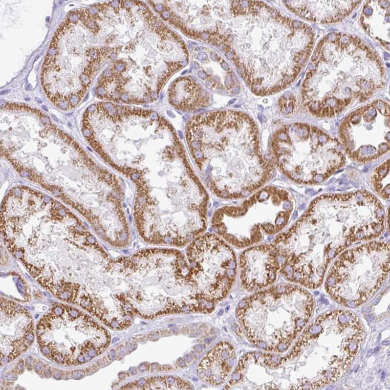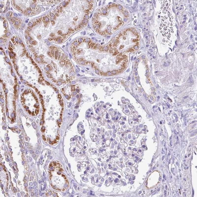 - Immunohistochemical analysis of TMEM246 in human kidney using TMEM246 Polyclonal Antibody (Product # PA5-52817) shows moderate granular cytoplasmic positivity in cells in tubules.