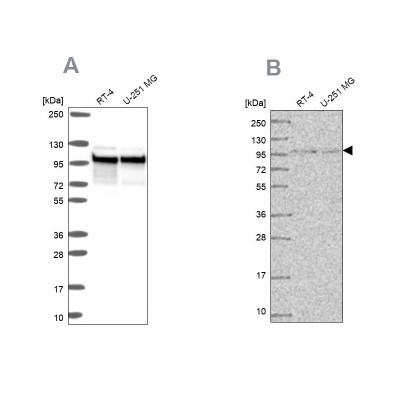 - Western Blot: IRF2BPL Antibody [NBP2-56241] - Analysis using Anti-IRF2BPL antibody NBP2-56241 (A) shows similar pattern to independent antibody NBP2-14712 (B).