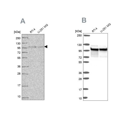 - Western Blot: IRF2BPL Antibody [NBP2-14712] - Analysis using Anti-IRF2BPL antibody NBP2-14712 (A) shows similar pattern to independent antibody NBP2-56241 (B).