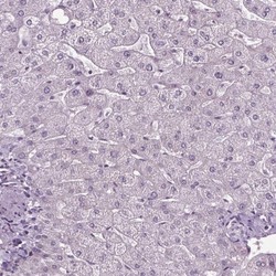 - Immunohistochemistry-Paraffin: solute carrier family 22, member 18 antisense Antibody [NBP2-39093] - Staining of human liver shows low expression as expected.