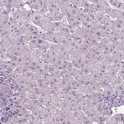 - Immunohistochemical staining of SLC22A18AS in human liver using SLC22A18AS Polyclonal Antibody (Product # PA5-64365) shows low expression as expected.