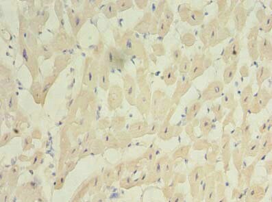 - Immunocytochemical analysis of paraffin-embeded C20orf27 in human heart tissue using a C20orf27 Polyclonal antibody (Product # PA5-113406) at a dilution of 1:100.