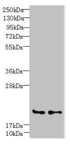- Western Blot analysis of C20orf27 in multiple sample types using a C20orf27 polyclonal antibody (Product # PA5-113406) at a concentration of 6 µg/ml. A goat anti rabbit polyclonal secondary antibody was used at a dilution of 1:10,000. Sample types that were tested include: Lane 1: HCT116 whole cell lysate, Lane 2: MDA-MB-231 whole cell lysate.