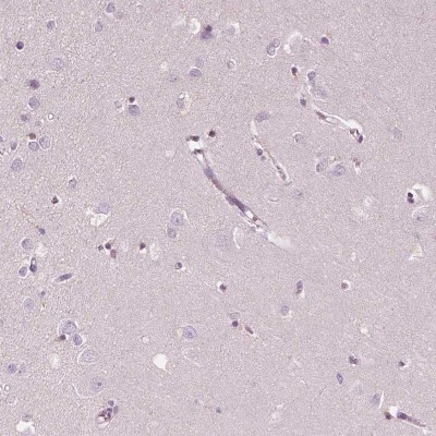 - Immunohistochemistry-Paraffin: ELSPBP1 Antibody [NBP2-13957] - Staining of human cerebral cortex shows no positivity in neurons as expected.