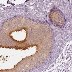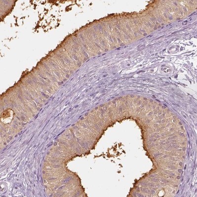 - Immunohistochemistry-Paraffin: ELSPBP1 Antibody [NBP2-13957] - Staining of human epididymis shows moderate cytoplasmic positivity in glandular cells.