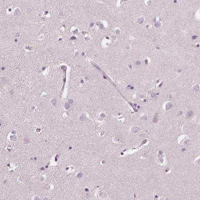 - Immunohistochemistry-Paraffin: ELSPBP1 Antibody [NBP2-13958] - Staining of human cerebral cortex shows no positivity in neurons as expected.