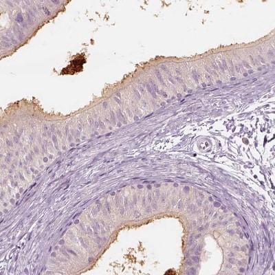 - Immunohistochemistry-Paraffin: ELSPBP1 Antibody [NBP2-13958] - Staining of human epididymis shows membranous positivity in glandular cells.