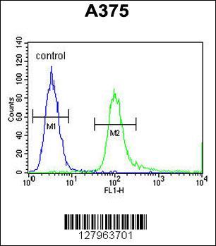 - SPDYE3 Antibody (Center) (Cat. #AP10357c) flow cytometric analysis of A375 cells (right histogram) compared to a negative control cell (left histogram).FITC-conjugated goat-anti-rabbit secondary antibodies were used for the analysis.