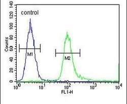 - Flow cytometry of SPDYE3 in A375 cells (right histogram). Samples were incubated with SPDYE3 polyclonal antibody (Product # PA5-23861) followed by FITC-conjugated goat-anti-rabbit secondary antibody. Negative control cell (left histogram).