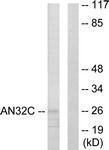 - Western blot analysis of extracts from HuvEc cells, using ANP32C Antibody. The lane on the right is treated with the synthesized peptide.