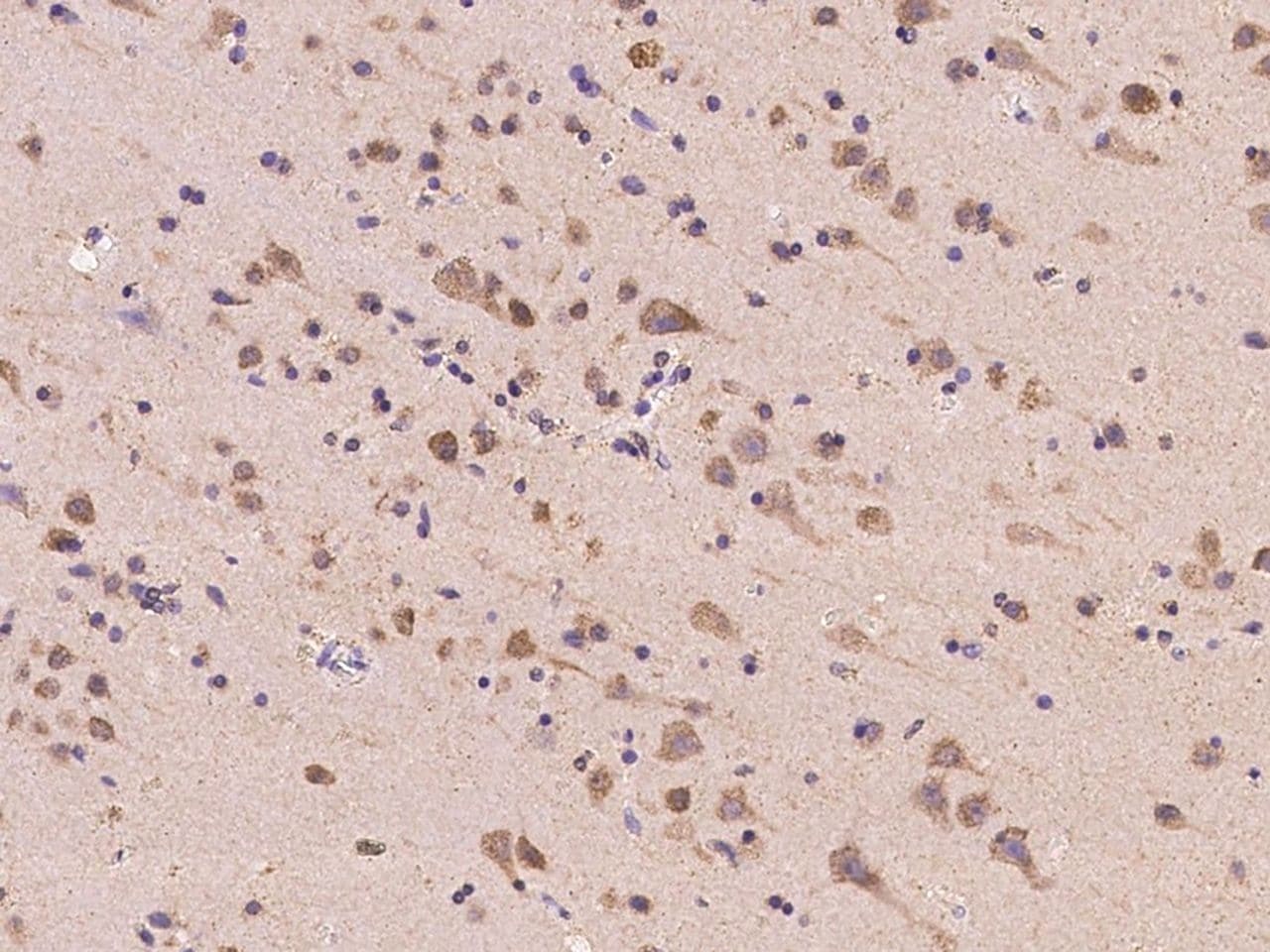 - Immunohistochemical staining of human ACOT1 in human brain with ACOT1 Polyclonal Antibody (Product # PA5-117764, 1:500 dilution, formalin-fixed paraffin embedded sections).