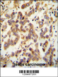 - CT173 antibody (Center) (Cat. #AP10828c) immunohistochemistry analysis in formalin fixed and paraffin embedded human testis carcinoma followed by peroxidase conjugation of the secondary antibody and DAB staining. This data demonstrates the use of the CT173 antibody (Center) for immunohistochemistry. Clinical relevance has not been evaluated.