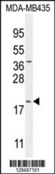 - CT173 Antibody (Center) (Cat. #AP10828c) western blot analysis in MDA-MB435 cell line lysates (35ug/lane).This demonstrates the CT173 antibody detected the CT173 protein (arrow).