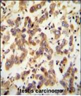 - Immunohistochemistry analysis of CT173 in formalin fixed and paraffin embedded human testis carcinoma. Samples were incubated with CT173 polyclonal antibody (Product # PA5-24315) followed by peroxidase conjugation of the secondary antibody and DAB staining. This data demonstrates the use of this antibody for immunohistochemistry. Clinical relevance has not been evaluated.