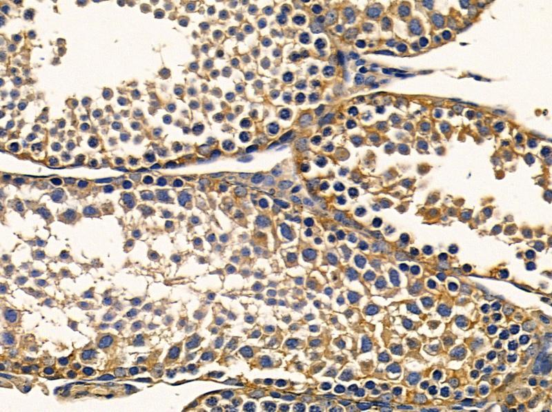 - Immunohistochemistry analysis of EXPH5 in mouse testis tissue. The sample was formaldehyde fixed and a heat mediated antigen retrieval step in citrate buffer was performed. Samples were incubated with EXPH5 polyclonal antibody (Product # PA5-100510) using a dilution of 1:100 (4°C overnight) followed by HRP conjugated anti-Rabbit secondary antibody.