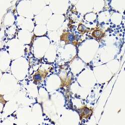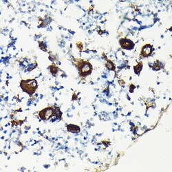 - Immunohistochemistry analysis of CD61 in paraffin-embedded mouse bone marrow. Samples were incubated with CD61 Polyclonal antibody (Product # PA5-96157) using a dilution of 1:100 (40x lens). Perform high pressure antigen retrieval with 10 mM citrate buffer pH 6.0 before commencing with IHC staining protocol.