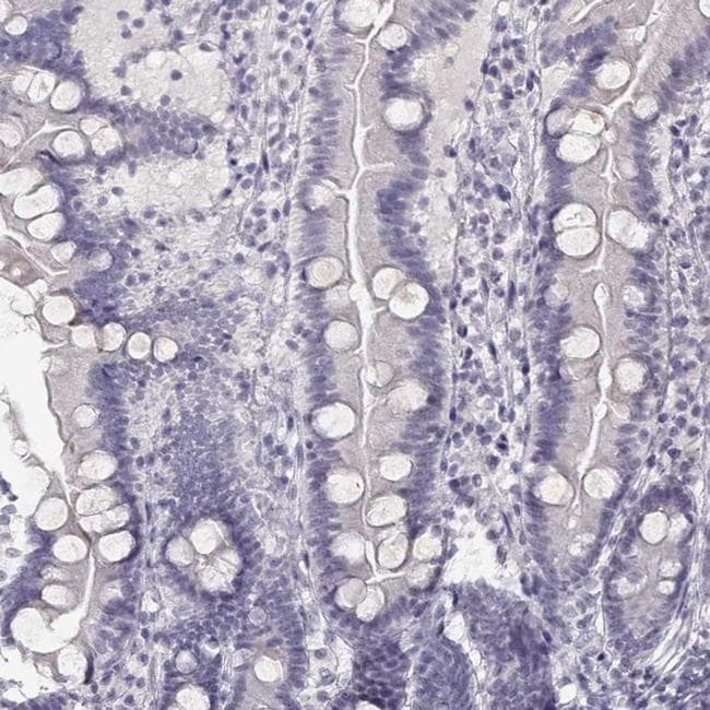 - Immunohistochemical staining of IMPG1 in human duodenum shows no positivity in glandular cells. Samples were probed using an IMPG1 Polyclonal Antibody (Product # PA5-65006).
