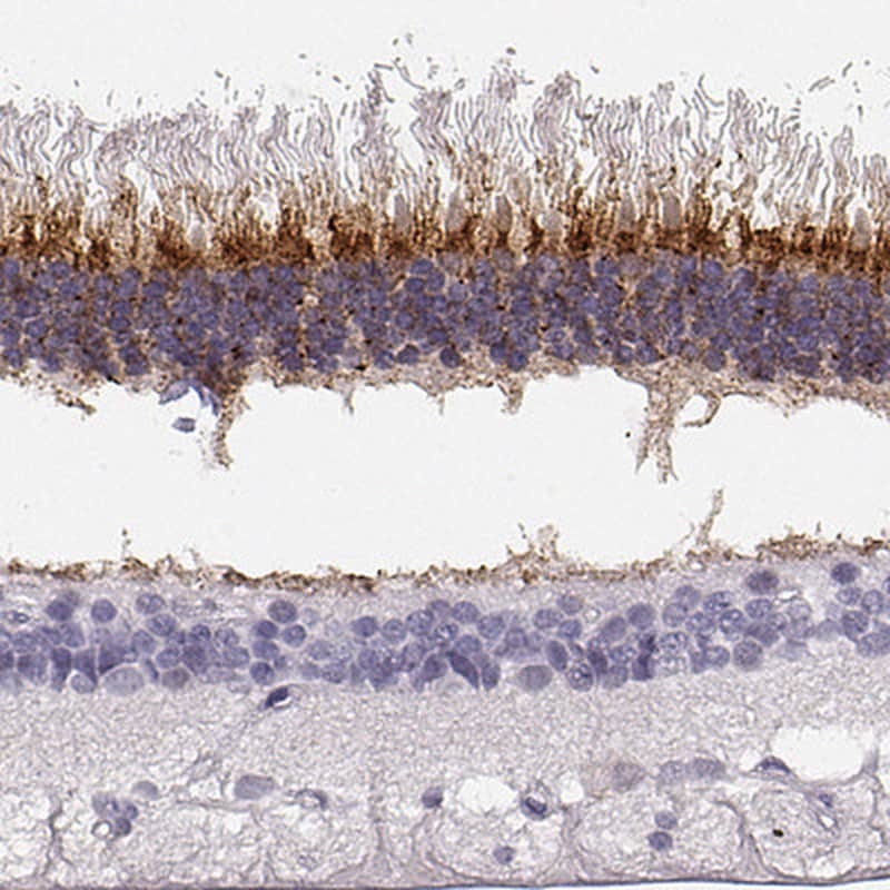 - Immunohistochemical staining of IMPG1 in human eye, retina using IMPG1 Polyclonal Antibody (Product # PA5-65006).