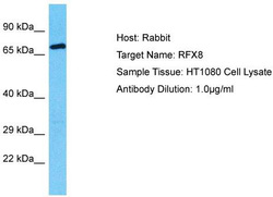 - Host: Rabbit; Target Name: RFX8; Sample Tissue: HT1080 Whole Cell lysates; Antibody Dilution: 1.0ug/ml