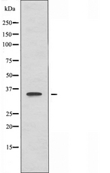 - Western blot analysis of extracts of HepG2 cells using OR52A1 antibody.