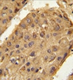 - Formalin fixed and paraffin embedded human hepatocarcinoma reacted with FAM104B Antibody (N-term) Cat.-No AP51516PU-N followed by peroxidase conjugation of the secondary antibody and DAB staining.