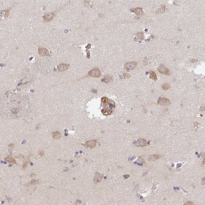 - Immunohistochemistry-Paraffin: TMEM229A Antibody [NBP2-33783] - Staining of human lateral ventricle shows moderate cytoplasmic positivity in neuronal cells.