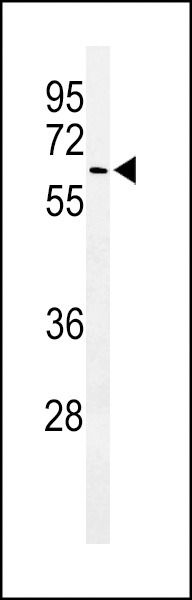 - Western blot analysis of ALG10 Antibody (N-term) (Cat. #AP9961a) in A375 cell line lysates (35ug/lane). ALG10 (arrow) was detected using the purified Pab.