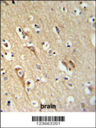 - ALG10 Antibody (N-term) (Cat. #AP9961a) IHC analysis in formalin fixed and paraffin embedded brain tissue followed by peroxidase conjugation of the secondary antibody and DAB staining. This data demonstrates the use of the ALG10 Antibody (N-term) for immunohistochemistry. Clinical relevance has not been evaluated.