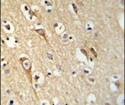 - Immunohistochemistry analysis in formalin-fixed, paraffin-embedded brain tissue using an ALG10 polyclonal antibody (Product # PA5-26960), followed by HRP-conjugated secondary antibody and DAB staining.