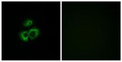 - Immunofluorescence analysis of MCF-7 cells, using OR52D1 antibody.The picture on the right is treated with the synthesized peptide.
