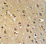 - SPRN Antibody IHC of formalin-fixed and paraffin-embedded brain tissue followed by peroxidase-conjugated secondary antibody and DAB staining.