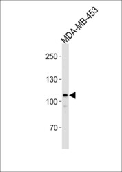 - Western blot of lysate from MDA-MB-453 cell line, using GEN1 Antibody. Antibody was diluted at 1:1000. A goat anti-rabbit IgG H&L (HRP) at 1:5000 dilution was used as the secondary antibody. Lysate at 35ug.