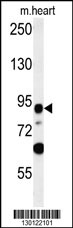 - LRRC36 Antibody (N-term) western blot analysis in mouse heart tissue lysates (35ug/lane).This demonstrates the LRRC36 antibody detected the LRRC36 protein (arrow).